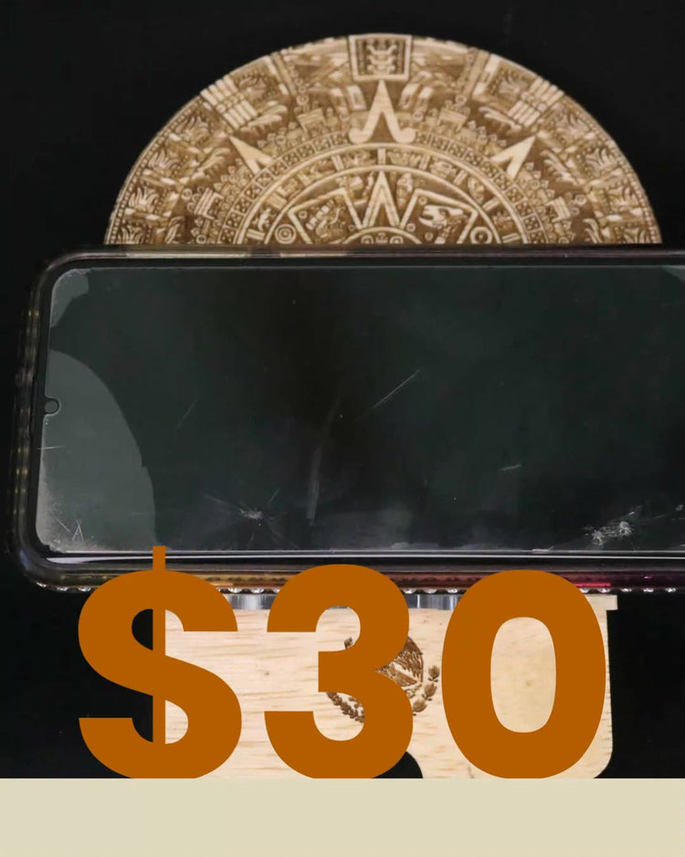 This Aztec art inspired phone stand is the perfect addition to any desk or bedside table. Made from high-quality wood and laser engraved with intricate Aztec-inspired designs, this phone stand is not only functional but also a work of art. Our laser engraved Aztec calendar phone stand is collapsible and stores easily when traveling.